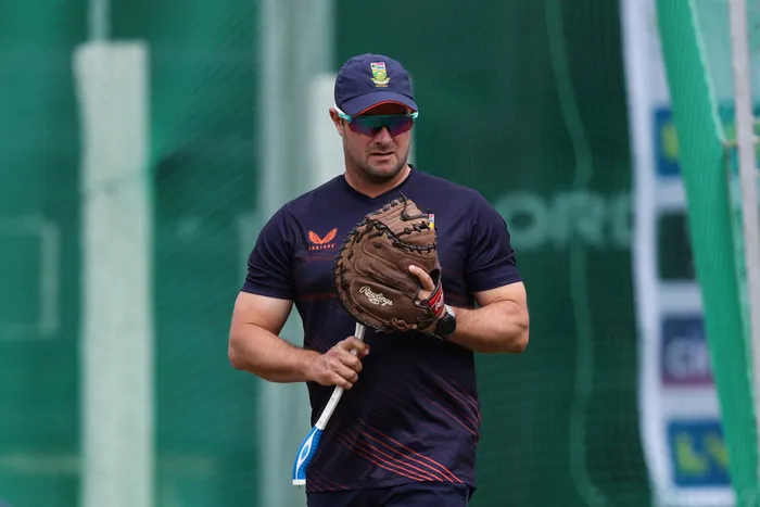 Proteas head coach Mark Boucher leads a practice session Proteas head coach Mark Boucher leads a practice session. Photo: Adrian Dennis/AFP
