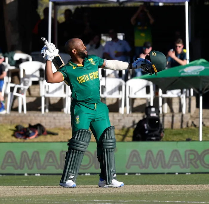 Temba Bavuma of South Africa celebrates scoring 100 runs during the 2023 Betway ODI International Series cricket Match 1 between South Africa and Australia on the 07 September 2023 at Mangaung Oval in Bloemfontein There will be a lot resting on the shoulders of Temba Bavuma as he leads the Proteas in their Cricket World Cup campaign, starting with a clash against Sri Lanka in Delhi on Saturday. Picture: Sydney Mahlangu/BackpagePix