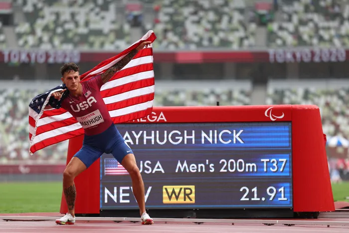 American Nick Mayhugh said he wanted to be like his hero "Usain Bolt" after smashing his own world record set only the day before to take gold in the men's T37 200m in 21.91sec.