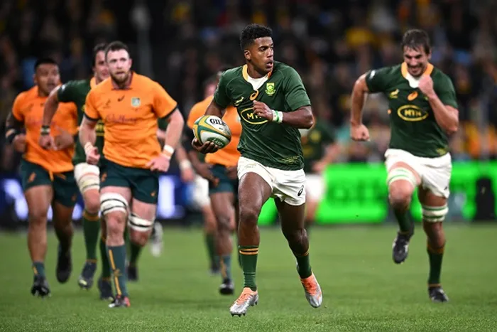 Canan Moodie scored a try on Test debut for the Springboks against the Wallabies at the Allianz Stadium in September last year. | AAP Dan Himbrechts