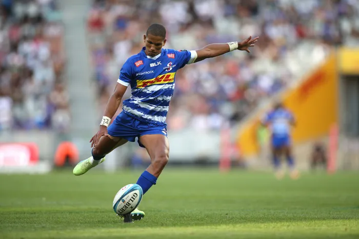 Manie Libbok of Stormers kicks a conversion during the United Rugby Championship 2022/23 match between Stormers and Lions held at Cape Town Stadium in Cape Town Manie Libbok has had a fairytale time at the Stormers, but it hasn’t always been rosy on a rugby field during his senior career. Picture: Shaun Roy/BackpagePix