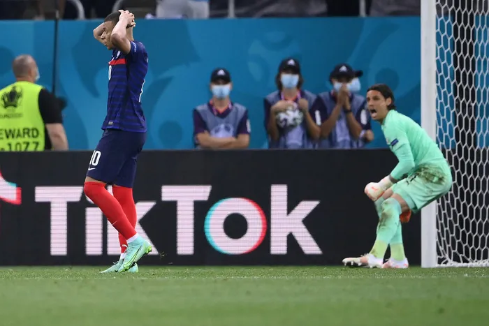France's forward Kylian Mbappe (L) reacts to his miss as Switzerland's goalkeeper Yann Sommer celebrates his save. Photo: Franck Fife/AFP