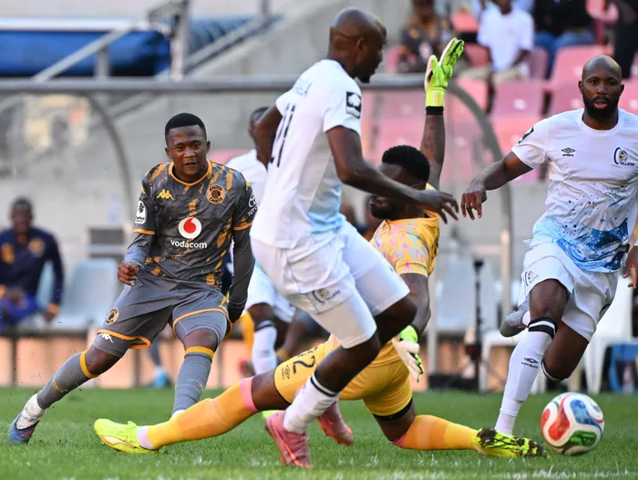 Mduduzi Shabalala of Kaizer Chiefs shoots at goal during their Betway Premiership clash against Orbit College at Nelson Mandela Bay Stadium in Gqeberha on Monday. Photo: BackpagePix