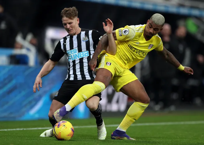 Newcastle United's Scottish midfielder Matt Ritchie (L) and Fulham's Gabonese midfielder Mario Lemina compete during during their draw. Photo: AFP