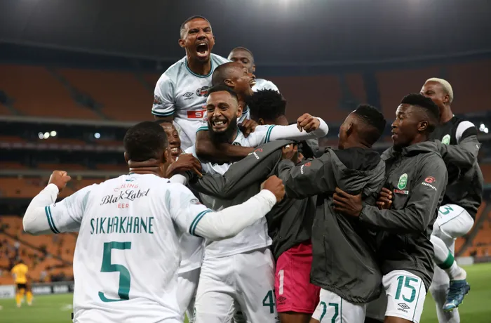 AmaZulu’s Taariq Fielies celebrates with teammates after scoring a late winner during their Carling Knockout match against Kaizer Chiefs AmaZulu’s Taariq Fielies celebrates with teammates after scoring a late winner during their Carling Knockout match against Kaizer Chiefs at the FNB Stadium in Soweto, Johannesburg on Saturday. Photo: Muzi Ntombela/BackpagePix