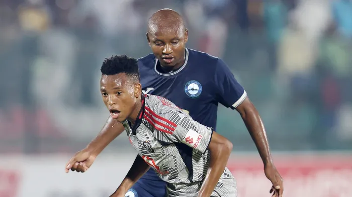 Isithombe ORLANDO Pirates's Relebohile Mofokeng up against Richards Bay talisman Sanele Barns, as the two sides chase different targets.