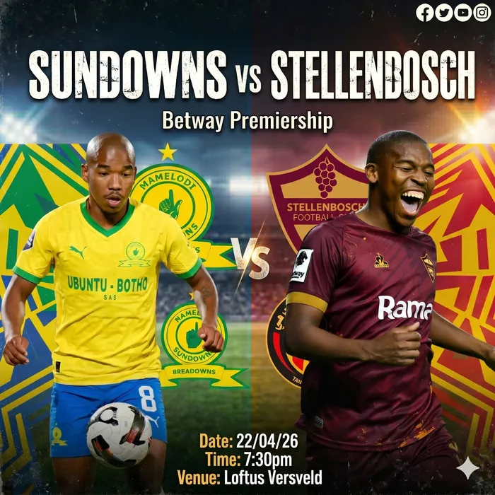 Sundowns face Stellenbosch FC in a Betway Premiership clash at Loftus Versveld on Wednesday evening.