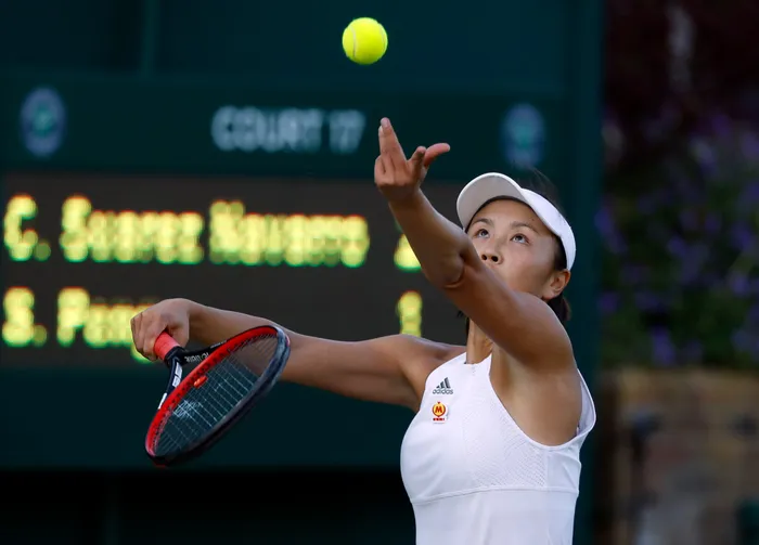 China's Shuai Peng serves to Spain's Carla Suarez Navarro during their Women's Single Match on day three at the 2017 Wimbledon Tennis Championships in London FILE - China's Shuai Peng serves to Spain's Carla Suarez Navarro during their Women's Single Match on day three at the 2017 Wimbledon Tennis Championships in London. Photo: Alastair Grant/AP Photo