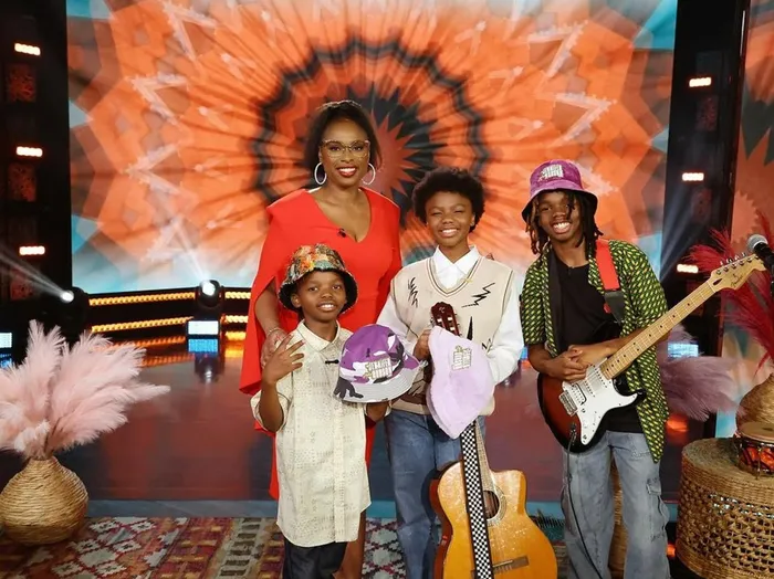 Biko’s Manna, which consists of Biko, 16, and her brothers, Manna, 13, and Mfundo, 8, with Jennifer Hudson on her talk show. Picture: Instagram.