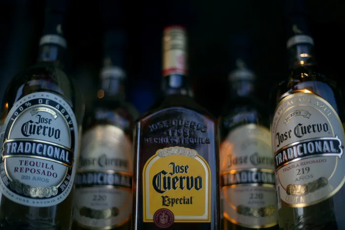 Bottles of Jose Cuervo Tequila rest on a shelf in Mexico City Bottles of Jose Cuervo Tequila rest on a shelf in Mexico City