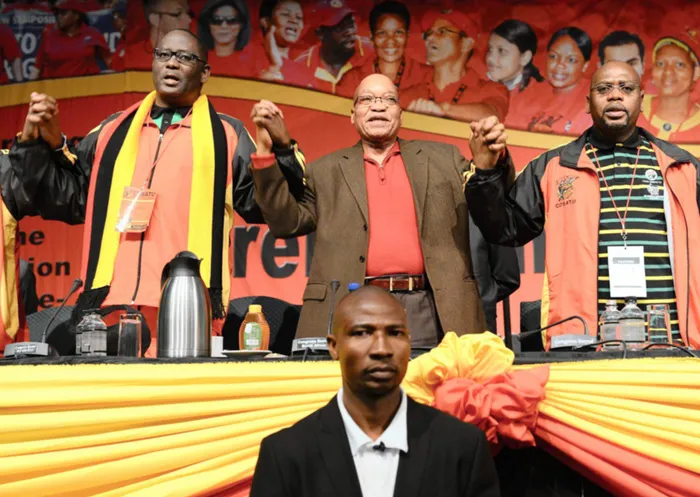 FAIR-WEATHER FRIENDS: Cosatu secretary-general Zwelinzima Vavi, President Jacob Zuma and Cosatu president S'dumo Dlamini at the federation's 11th national congress at Gallagher Estate in Midrand in September. Picture: Dumisani Sibeko FAIR-WEATHER FRIENDS: Cosatu secretary-general Zwelinzima Vavi, President Jacob Zuma and Cosatu president S'dumo Dlamini at the federation's 11th national congress at Gallagher Estate in Midrand in September. Picture: Dumisani Sibeko