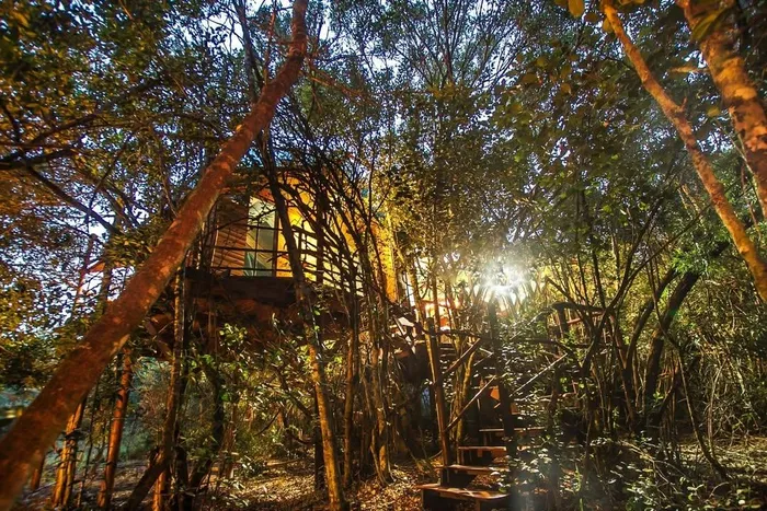 The design focuses on an immersive forest experience where you can listen to the calls of the Knysna Turaco from your bed. The bathrooms are a highlight as they feature large tubs that look directly into the greenery. It is a refreshing and secluded escape where the sounds of the forest replace the hum of city life.