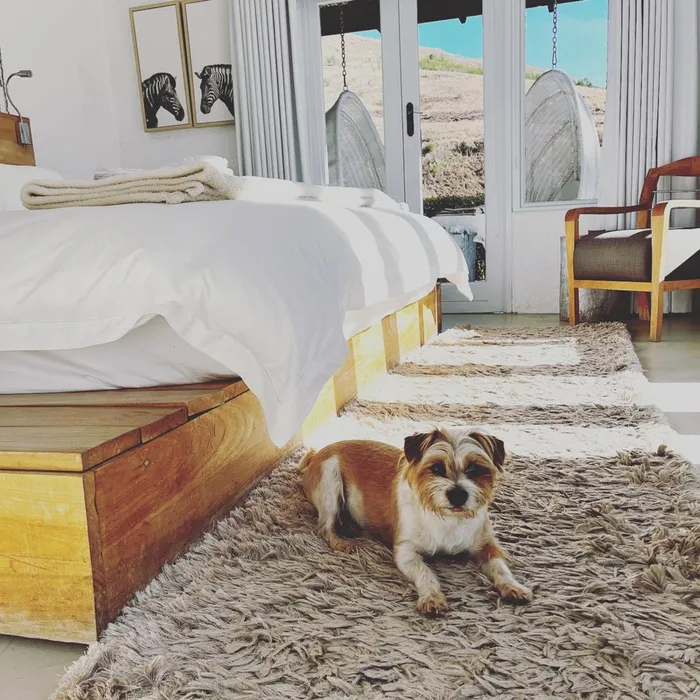 Milo, resident pet, enjoying some down time in one of the suites at Qambathi. Picture: Instagram